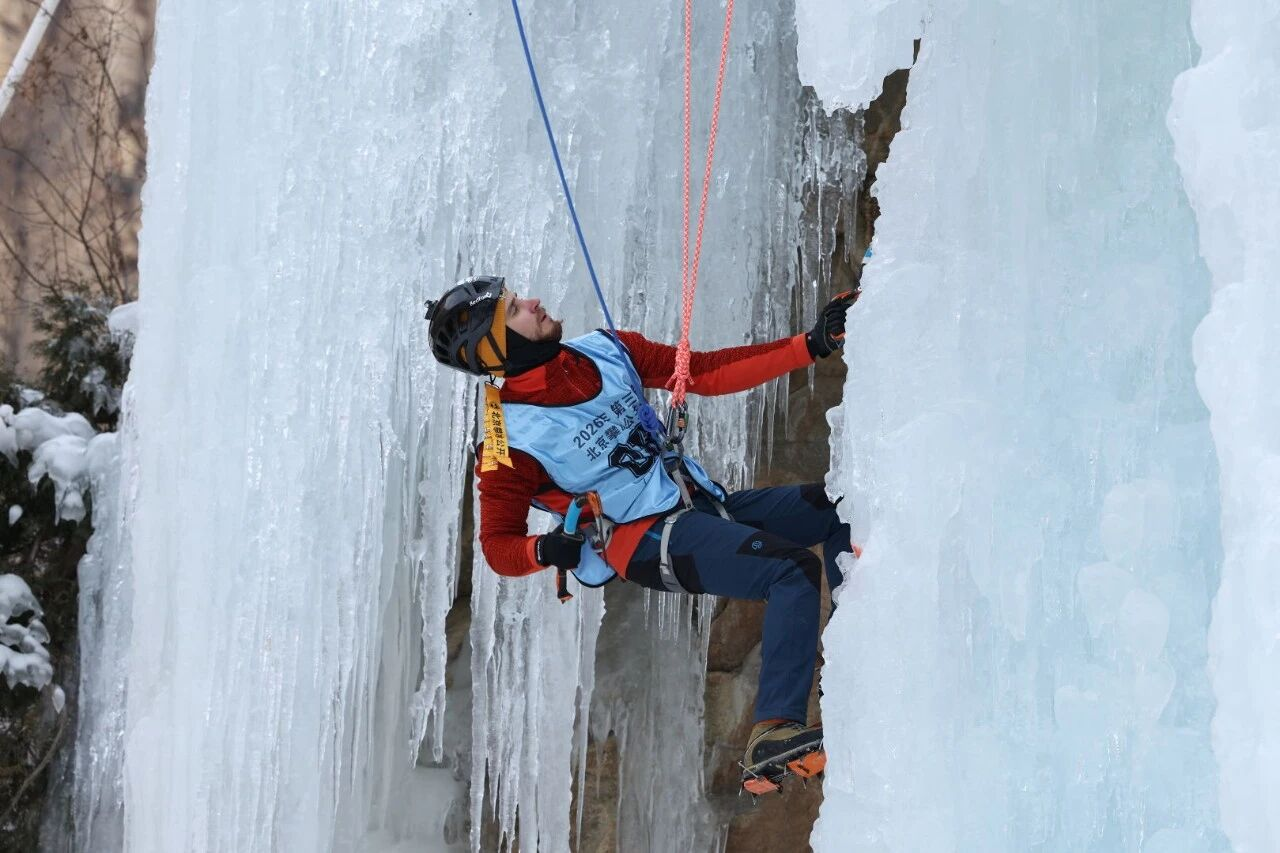 1月17-18日,2026第三届北京攀冰公开赛在密云区云蒙峡风景区成功举办。作为后冬奥时代北京冰雪运动的重要品牌赛事,本次比赛不仅吸引了来自全国23个省、直辖市以及多位港澳台运动员,更有美国、法国、英国、俄罗斯、乌克兰等多国运动员报名参赛。百余位选手在晶莹剔透的冰壁上演绎了技巧与力量的巅峰对决。
